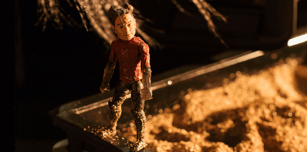 Die wundersame Reise wird mit Figurenspiel und Live-Kamera inszeniert. Die Live-Kamera ist das Mittel, um das Zauberhafte aus dem Alltäglichen herauszuholen. So wird eine kleine Pfütze zum Meer, aus Furchen im Sandkasten wird ein gepflügter Acker und aus einem bunten Eimer der Sonnenuntergang.